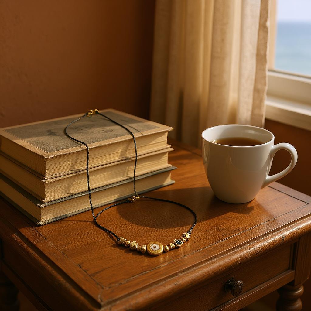 Este choker hecho a mano es una pieza versátil y moderna, creada con hilo chino resistente y cuentas de acero inoxidable que aportan un toque brillante y elegante. Su diseño ajustable se adapta cómodamente a tu cuello, ideal para usar solo o como parte de una combinación en capas.